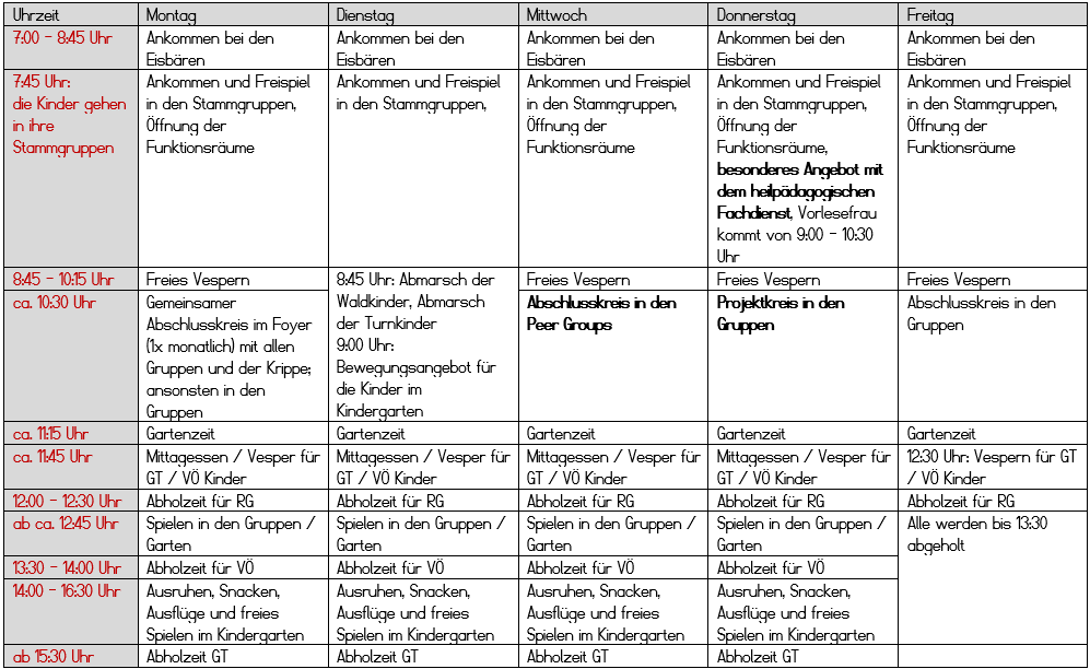 die Krippe und können je nach Angebot, Jahreszeit, Wetter und Gruppe leicht variieren.